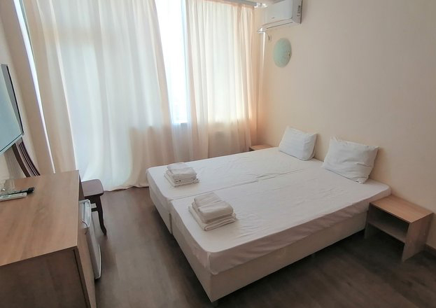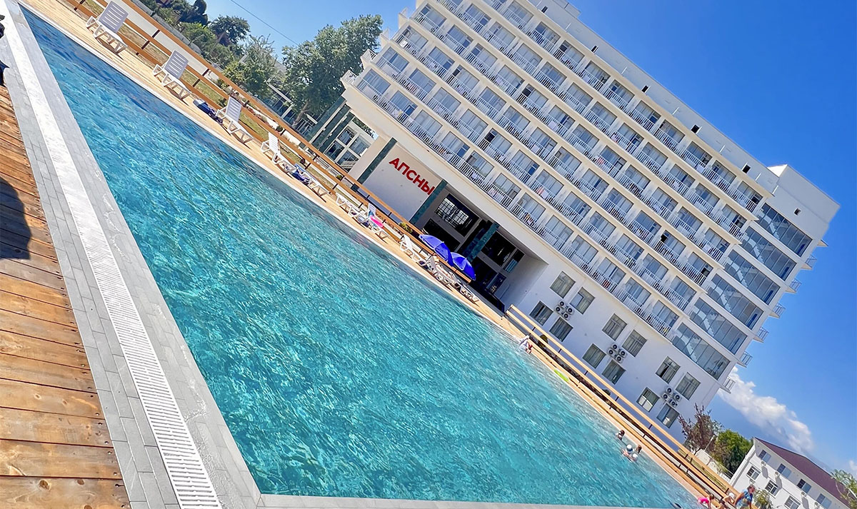 Гостиница «Апсны» Гудаута это десяти-этажный корпус в 50 метрах от пляжа. Номера двухместные и семейные двух комнатные на 4 человека.